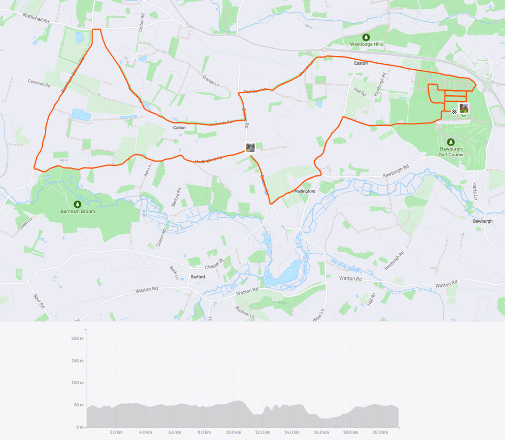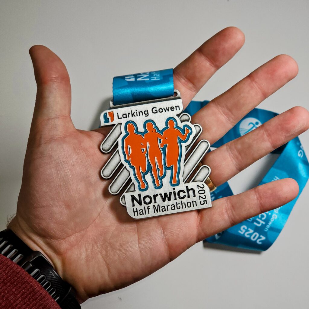 The Norwich Half Marathon is a good entry into the distance, a loop starting at the Norwich showground and working its way out on a mostly flat course around the surrounding countryside on closed roads with porta-loos at water stops and pacers up to 2:45 it provides an easy introduction to longer races.